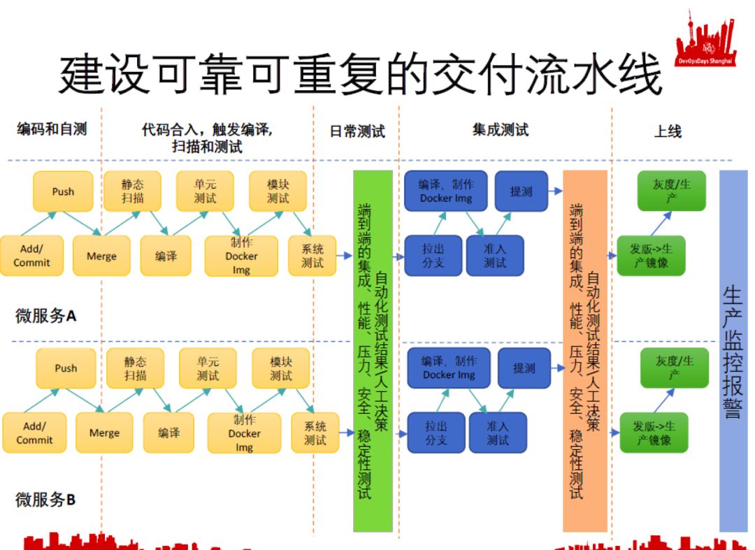 第二,DevOps测试是在流水线的任何阶段。这个任何阶段是指什么呢?所谓流水线大家都知道;