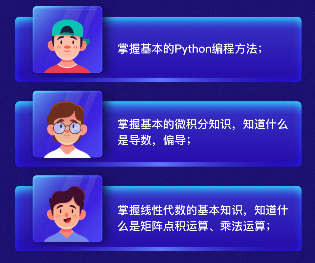 这次2天训练营,需要来参加课程的同学只需要掌握基本的Python编程方法就可以。相关的数学知识,会在课程给大家讲明白。