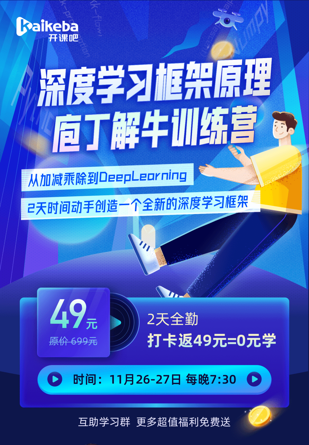 当然,通过2天的《深度学习框架原理庖丁解牛训练营》,你可以一次性掌握深度学习框架搭建的原理,进一步探索激动人心的人工智能。