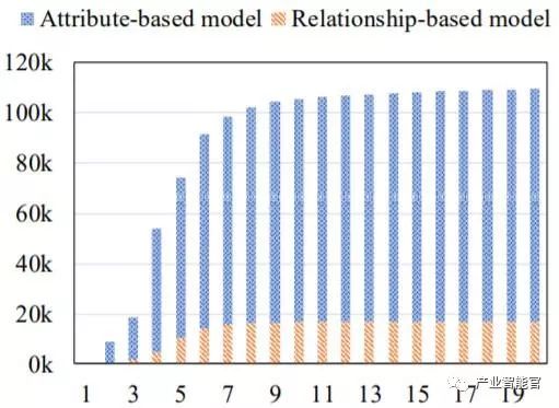 我们通过将关系特征和属性特征分开而使用了协同训练。基于属性的模型和基于关系的模型都能在每次迭代中找到新配对然后增强彼此。图 2 给出了每个模型所得到的已链接配对的统计情况。在这项任务中,基于属性的模型生成的配对比基于关系的模型多,这是因为我们没有完整的领英关系数据。我们爬取了公开的领英个人资料中的「人们还看了」列表,这只能为每位用户提供不到 10 个关系。