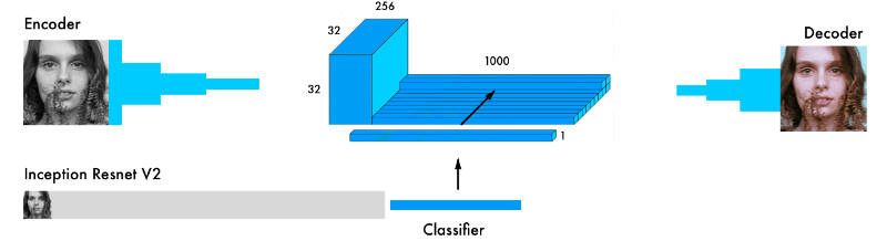 第三部分,也就是在最后的final版中,我会把神经网络和分类器结合起来。我使用的是已经在120万张图像上训练过的谷歌Inception Resnet V2,以及图片网站Unsplash上的肖像图(文末附公开数据集地址)。