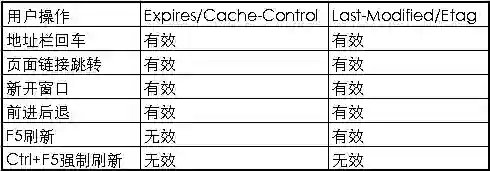 通过上表我们可以看到,当用户在按 F5进行刷新的时候,会忽略Expires/Cache-Control的设置,会再次发送请求去服务器请求,而Last-Modified/Etag还是有效的,服务器会根据情况判断返回304还是200;