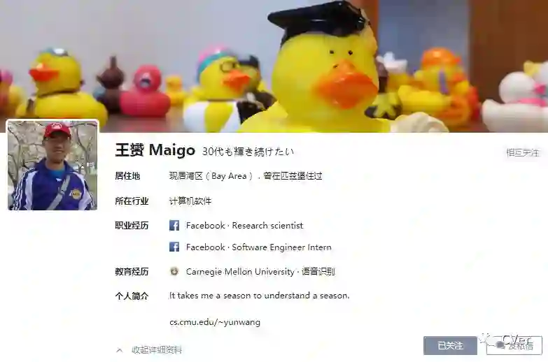 王赟 Maigo 本科(2006-2010)就读于清华大学电子工程系,硕博期间(2010-2018)就读于CMU,研究的主要是语言识别方向。曾于2015年1月~4月,在Facebook Language Technology group中担任软件工程师实习生职务,现在在Facebook Machine Learning group中担任研究科学家(Research scientist)职务。