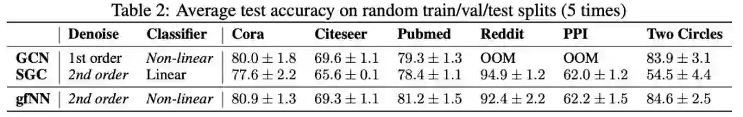 表2:随机train/val/test分段的平均测试精度(5次)