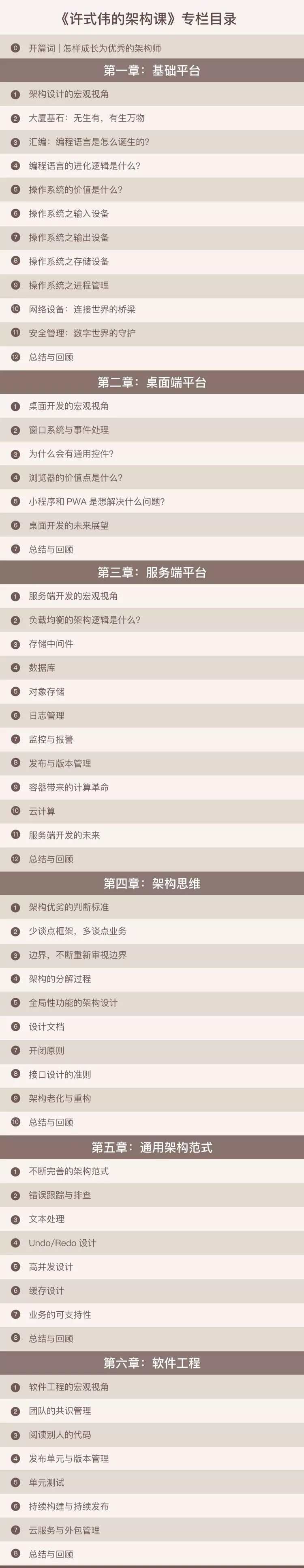 我没想到的是,这么多年过去,老许赶起了时髦,在 极客时间 开了《许式伟的架构课》。作为老同事,我觉得有义务帮他吆喝一下,这也是造福广大开发者的幸事。如果你对架构有兴趣,听听老许的经验,应当是很值得的。