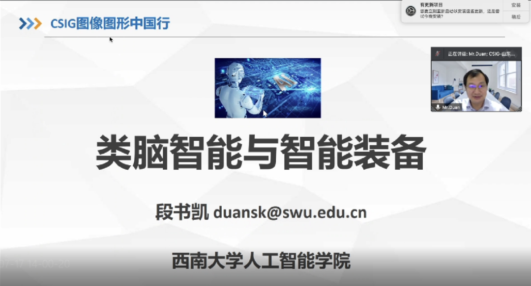 来自西南大学的段书凯教授首先作了题目为“智能算法与类脑芯片”的报告。报告指出类脑计算借鉴人脑信息处理方式,适用于实时处理非结构化信息、具有自主学习能力的超低功耗新型计算系统,它将在各个领域极大地拓展人类的智力活动范畴。报告介绍了类脑计算的最新科研成果,包括应用于多个领域的一系列深度学习算法、多款忆阻器原型芯片以及智能机器人汽车智能制造装备等。