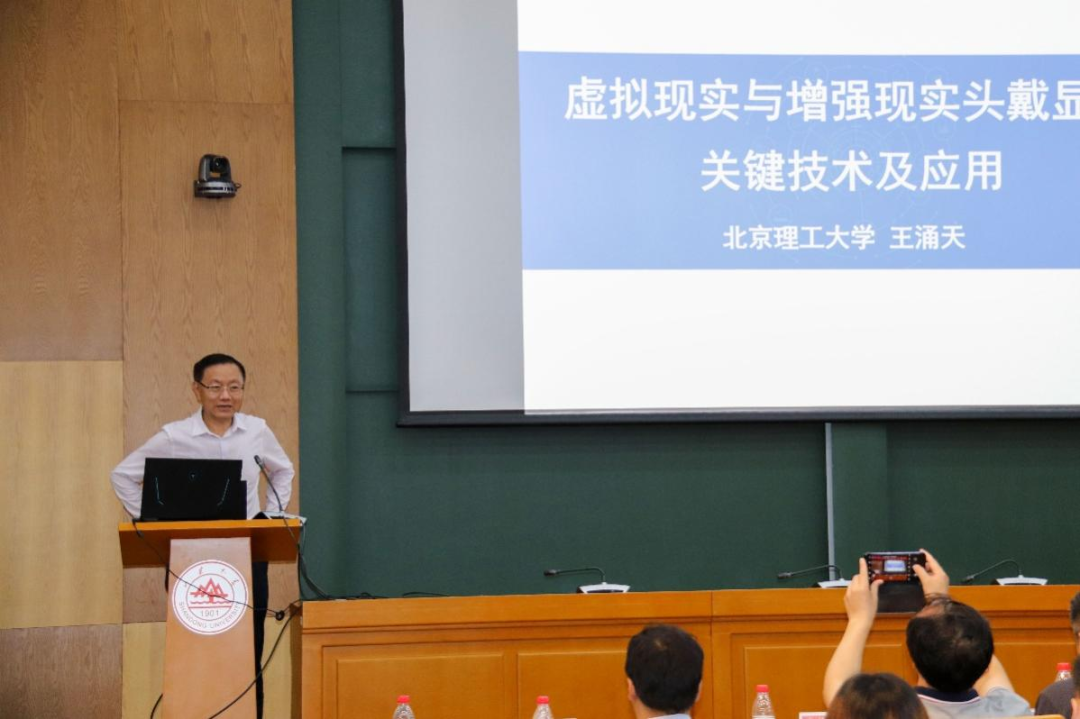 来自北京理工大学的王涌天教授带来的报告题目为“虚拟现实和增强现实头戴显示关键技术及应用”。报告介绍了北京理工大学在虚拟现实和增强现实头戴显示设备方面的研究成果,包括穿戴无扰化的超轻薄光学透视式头戴显示系统、成像高清化的大视场头戴显示系统、呈现舒适化的真三维头戴显示系统。