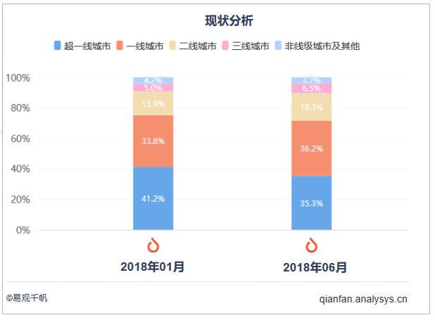 此次是多点联合各地商超巨头开启史上最长618的活动。与盒马大力布局一二线市场,倡导消费升级和品质生活不同,多点Dmall则采用技术赋能方式,瞄准四五线城市的连锁商超打造其线上业务的基础设施。随着多点布局的下沉,6月多点在二线、三线及非线级城市的用户占比,相较年初有明显的提升。