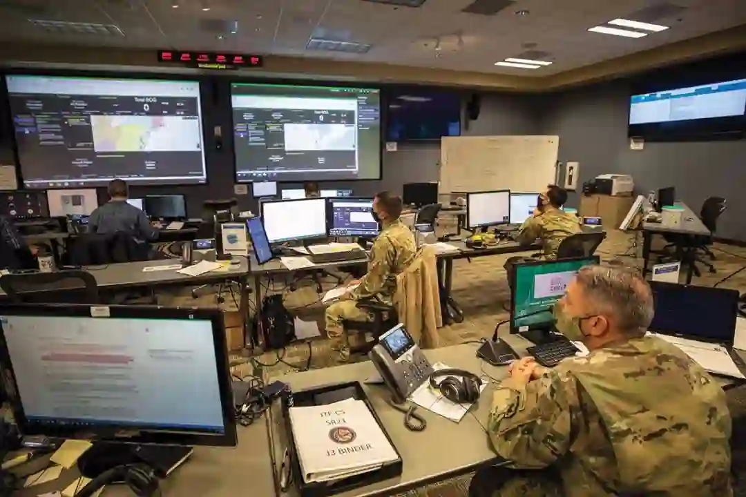 图:全域联合指挥与控制(JADC2)通过实时终端用户报告和协作规划,协同多个数据源,在国防支持民事当局行动期间,准确地在联合特遣部队民事支持(JTF-CS,美军机构) 可能需要的地方提供支持能力。