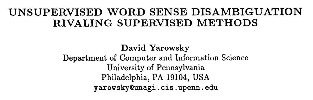 论文 2:Unsupervised Word Sense Disambiguation Rivaling Supervised Methods