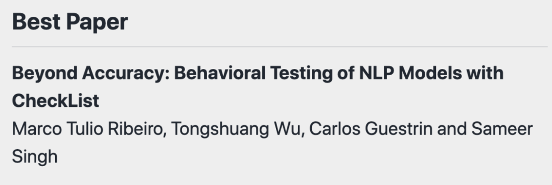 ACL 2020 最佳论文奖项由来自微软研究院、华盛顿大学、加州大学欧文分校的研究人员摘得,该研究提出了一种与任务无关的 NLP 模型测试方法。