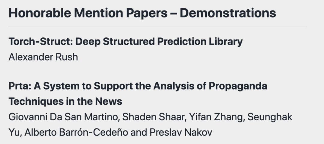 以下两篇论文获得了 ACL 2020 最佳 demo 论文荣誉提名奖: