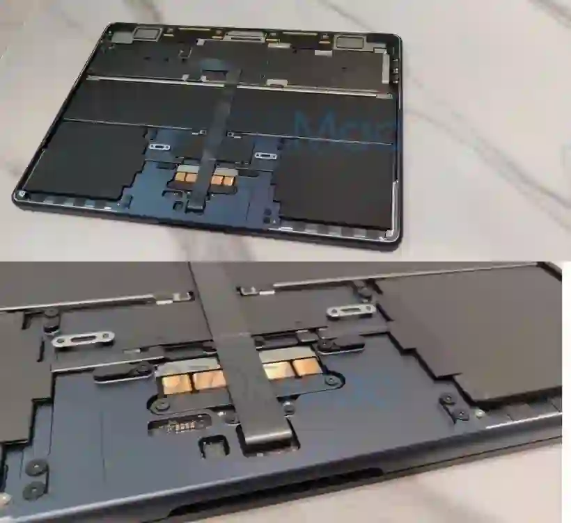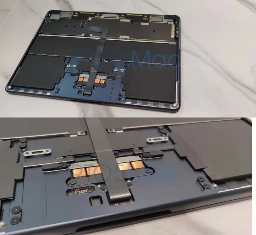 外媒 9to5Mac 已经拿到了一组全新 MacBook Air 的内部结构图。可以发现,该机与前一代产品一样采用了无风扇的设计,依旧搭载了四扬声器(两个高音单元和两个超薄低音单元),只不过扬声器位于铰链旁,暂不清楚是否会对音质造成负面影响。与此同时,大面积的散热系统覆盖 SoC 和其他组件,为了带来更佳的散热效果,苹果还使用了石墨胶带。除此,另外两张照片则展示了 M2 版 MacBook Air 的经典三段式电池和 Force Touch 触控板。