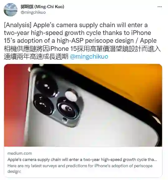 iPhone 15 Pro Max 或将采用潜望式长焦