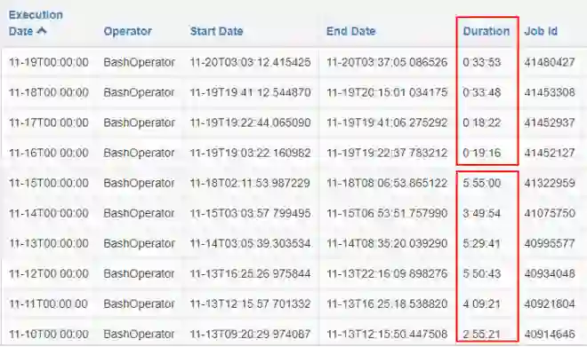 这也就解释了运行时长不断增长,排序的内存开销和时长都不断增长,直到某个阈值连加内存也不管用了。经过和业务同学的沟通,确认空值无意义,进行排除过滤。然后在默认的参数下进行了重跑,30 分钟内就跑完了。耗时下降约 90%,效果明显。