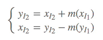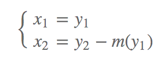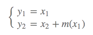 其中 m 是任意复杂的函数,但是这个分块对于任何 m 函数都具有单位雅可比行列式,且下面是可逆的: