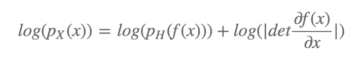 为了实现这个可逆的映射关系,就需要找到一个满足映射的函数 f,使得 h=f(x),这里的 x 就是高维数据,对应到图像生成上 x 就是输入的图像,h 就是映射到的潜在空间。这个过程是可逆的,也就是。这个潜在空间可以给定一个先验分布 pH(h),即 h∼pH(h)。 所以实现 NICE 的关键就是找到这个可逆的映射 f,这个不是一件容易的事,此时就引入了一个矩阵用于辅助实现映射,这就是雅可比矩阵。