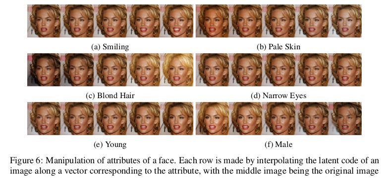 为了生成更多含语义的图像,文章利用了一些标签来监督训练,对于不同人脸属性合成的图像如下: