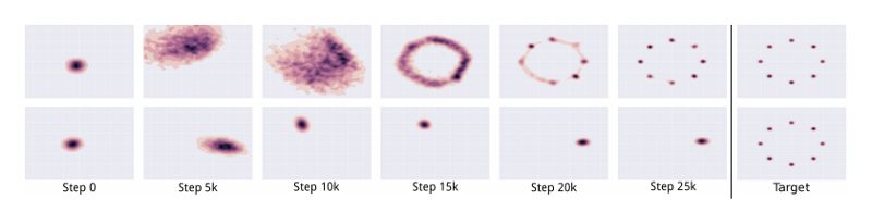 鉴别器最终会发现这种模式下的样本是假的。但生成器仅仅是锁定到另一种模式。这个循环无限重复,从根本上限制了生成样本的多样性。