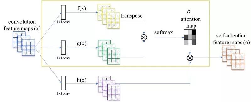 将 attention map(在黄色框中计算) 添加到标准卷积操作中