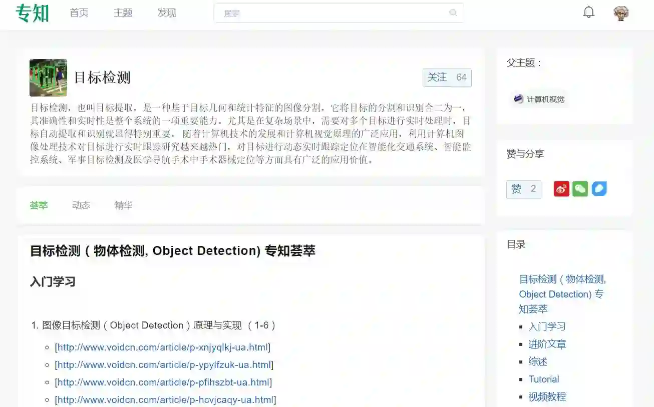 【导读】主题荟萃知识是专知的核心功能之一,为用户提供AI领域系统性的知识学习服务。主题荟萃为用户提供全网关于该主题的精华(Awesome)知识资料收录整理,使得AI从业者便捷学习和解决工作问题!在专知人工智能主题知识树基础上,主题荟萃由专业人工编辑和算法工具辅助协作完成,并保持动态更新!另外欢迎对此创作主题荟萃感兴趣的同学,请加入我们专知AI创作者计划,共创共赢! 今天专知为大家呈送第九篇专知主题荟萃-目标检测知识资料大全集荟萃 (入门/进阶/论文/综述/视频/专家等),请大家查看!专知访问www.zhuanzhi.ai, 或关注微信公众号后台回复" 专知"进入专知,搜索主题“目标检测”查看。此外,我们也提供该文网页桌面手机端(www.zhuanzhi.ai)完整访问,可直接点击访问收录链接地址,请文章末尾查看!此为初始版本,请大家指正补充,欢迎在后台留言!欢迎大家分享转发~