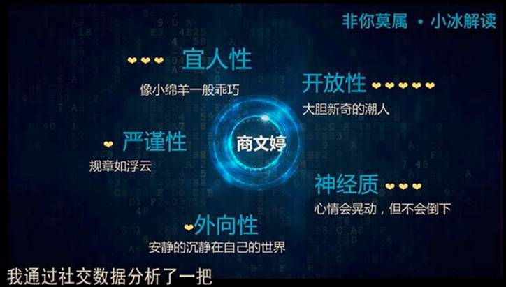 除了对消费者的消费行为进行预测和评估以外,个性化推荐的可应用空间相当可观。微软小冰就能够根据自身算法测量应聘者和面试官的性格,得出二者之间的匹配指数,为双方提供选择参考。