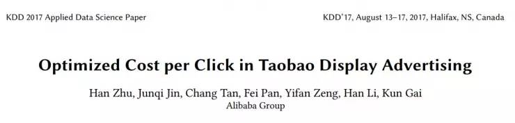 如下是来自阿里的KDD 2017 收录论文「Optimized Cost per Click in Taobao Display Advertising」(「淘宝展示广告中的OCPC智能调价算法」)的解读文章,文章作者为朱晗,靳骏奇,李晗。
