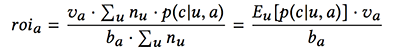 即单次点击的期望投资汇报率为期望GMV除以单次点击价格。进而,广告a对于不同用户和点击的ROI如公式(2),即平均转化率乘以比单价除以单次点击价格,其中na是某个用户在一段时间内的点击量。