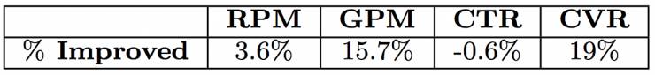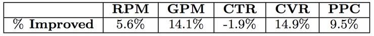 OCPC算法在在线生产环境中也展现了明显的效果提升,相比基准策略,其效果提升百分比如表2。