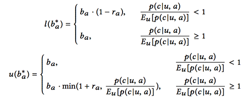 从而,该算法竞价优化的原则是:对于转化率升高的流量,提升其竞价来帮助广告主竞得优质流量;对于转化率下降的流量,降低竞价从而节约在劣质流量上的成本。出于调价的安全考虑,该算法设定了固定的调价范围参数,保证广告主的调价不过高或者过低,并以此得出调价的上界和下界