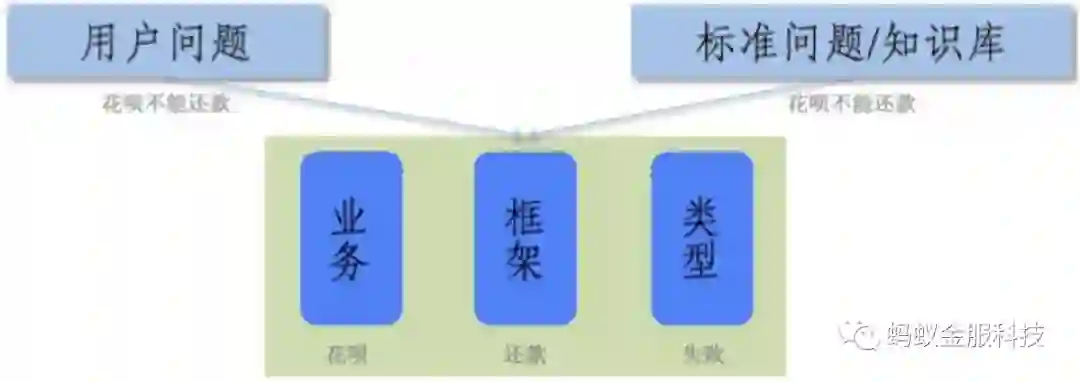 弈客:如今一百通电话里,有三十通会率先通过猜问题的形式对用户进行发问。如果没有猜中,就要思考如何在较短的轮数内摸清用户的需求。用户的大多数问题都能够以「业务、框架、类型」三要素方式进行拆分。例如「花呗不能还款」,「花呗」就是涉及的业务,问题的核心动词「还款」就是框架,「失败」是导致用户提问的诉求类型。有超过一千个用户问题都可以被拆解成三要素的形式,其中包括一百多类业务、不到一百类框架和不超过十种问题类型。