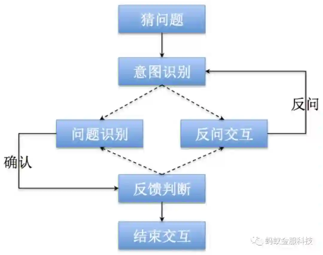 深空:MISA 的主要模块有猜问题、问题识别、反问交互三个。「猜问题」是蚂蚁金服在客服领域的首创,是一个利用用户可能与本次致电相关的信息,基于深度学习算法框架构建的问题识别模型。「问题识别」是根据用户的描述定位他可能遇到的问题。「反问交互」是在用户给出的信息不全时,利用「要素拆解和补全」的方式帮助问题识别模块圈定范围,降低问题识别的难度,以反问的形式与用户进行交互。