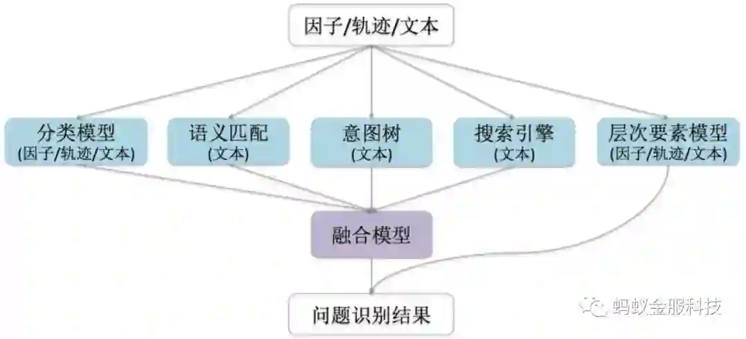 千瞳:问题识别模型是由多个子模型+融合模型的形式组织的。分类模型只是其中一种子模型,除此之外,还有搜索、意图树等多个结构化子模型。不同模型的输出格式也各不相同,分类模型返回不同类别的可能性打分,而意图树可能只返回某一个最可能的类别。在子模型各自进行问题识别后,我们会通过一个GBDT的模型,对前四个模型的结果进行融合。在融合模型阶段,我们取每一个模型的 top1输出,根据标注数据来选择输出可能性最高的那个模型的结果。