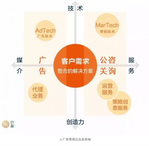 时趣互动创始人张锐认为,曾经以客户关系来做媒介采购的业务,是广告营销公司的核心业务。现在,媒体上游集中,客户关系衰微,技术驱动的媒介采购业务成为未来。埃森哲切入数字化媒介购买领域,推出程序化购买服务单元,包括媒介策划、媒介购买和程序化广告活动的管理,这里面离不开依赖数据更好地洞察。
