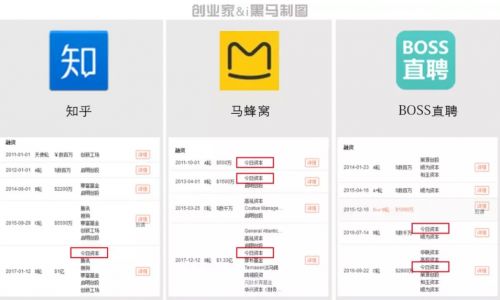 第二,叶茂中和这些互联网产品又都指向了“投资女王”徐新。分析知乎、马蜂窝、BOSS直聘的投资方,我们能发现今日资本重复出现。也许这只是个巧合。