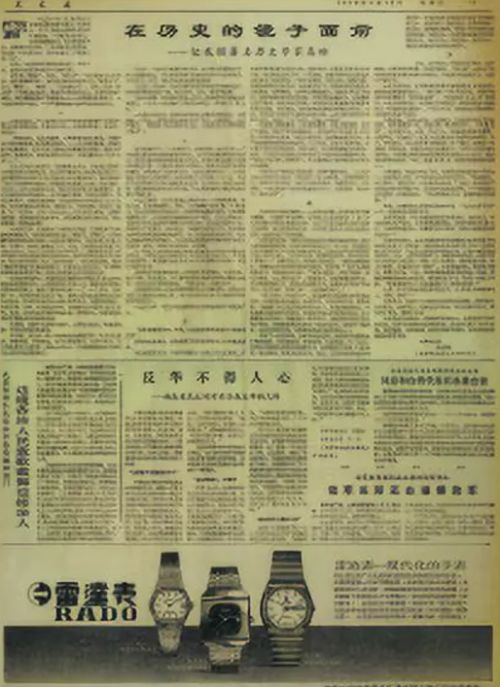△ 上海《文汇报》在1979年1月份的社论文章中宣布了商业广告的正式回归。奥美广告于同年3月15日投放了中国大陆地区的第一支作品——雷达表广告。