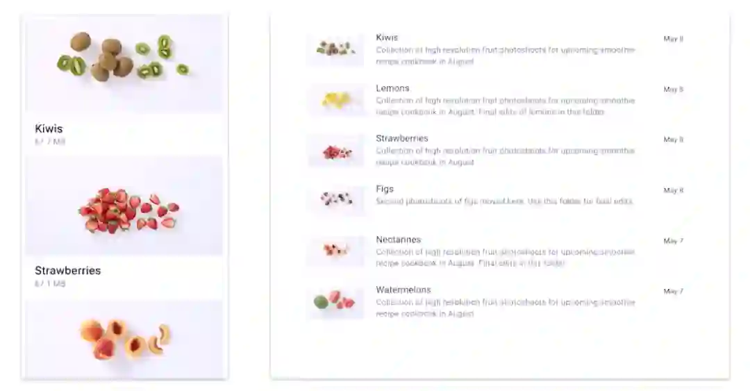指南中的组合部分带您了解如何充分利用屏幕空间以保障可读性,并且以尊重用户心智模型的方式在不同的场景下合理排布重要内容和操作选项。包括适当缩放以展示更多内容,如示例中的副标题和日期,以及较小的组合技术,例如在紧凑型的布局中对内容进行视觉分组并保持其相关性等。