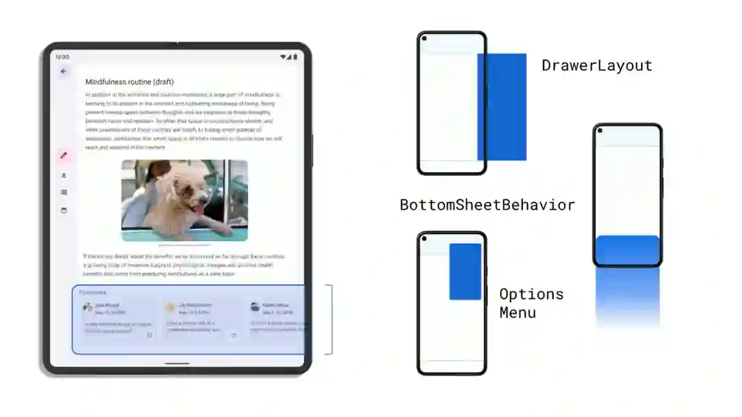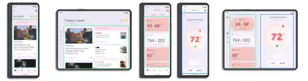 2021 年年初,我们在 Material Design 网站上发布了针对大屏设备的指南文档。Android 开发者峰会期间我们更新了一些内容,以帮助开发者为可折叠设备等更多其他类型的设备做好准备。