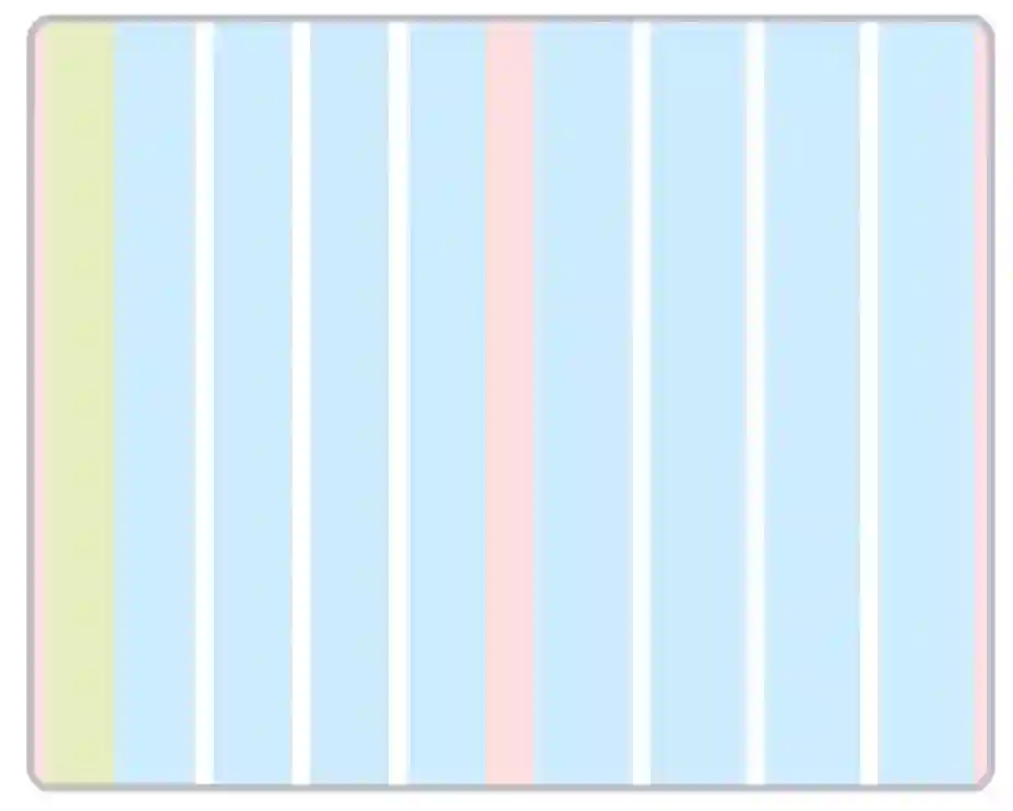 现在,许多应用将屏幕视作一个大画布或单栏,以水平和垂直的方式按相互关系绘制元素,有些应用也会在一侧整体留出边距。这一做法在小屏上或许行得通,当屏幕尺寸较大时就会出现明显的问题。网格系统则将您的布局划分为一系列栏,从而帮助您在规范网格中设计更具表现力的布局。在布局中使用栏式网格 (如下图),能够让大屏设备的体验呈现更贴心,更组织有序的印象,使得设备和内容更自然地融为一体。