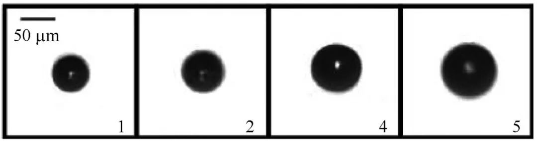 图6高速摄影拍摄到的体外激波碎石过程中结石表面的空化云溃灭过程