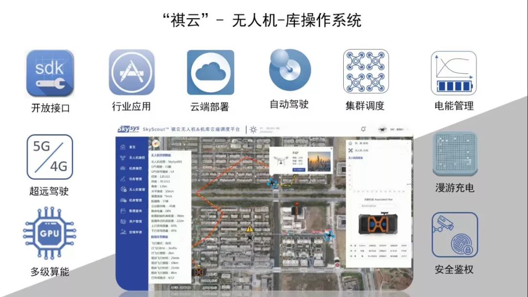 祺云系统是业内第一个无人机综合操作系统,提供无人机机场网络可视化云端调度。