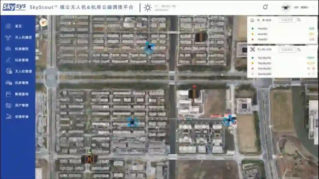 SkyScout “祺云”是业内首个空地一体的无人机机场网络可视化云端调度系统,让无人机入云、让智慧机库并网,打造出“远程中控-机库-无人机”的长链闭环,能够在线规划任务路径、远程调度无人机、实时监控系统状态,协调无人机在智慧机库网络间的穿梭出勤,让独立的机库成为互联的节点,实现协同作业,以规模化地管理无人机运营,提高无人机作业效率。