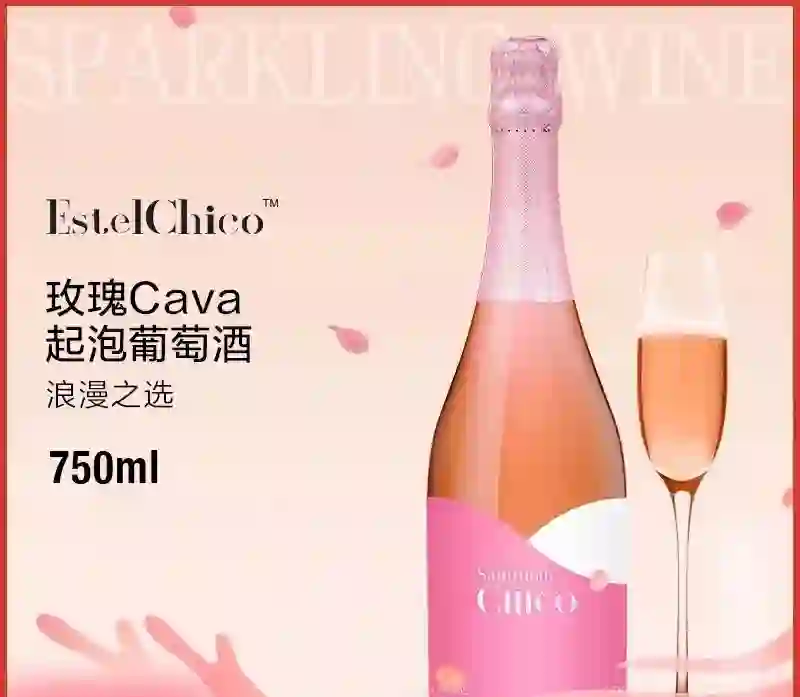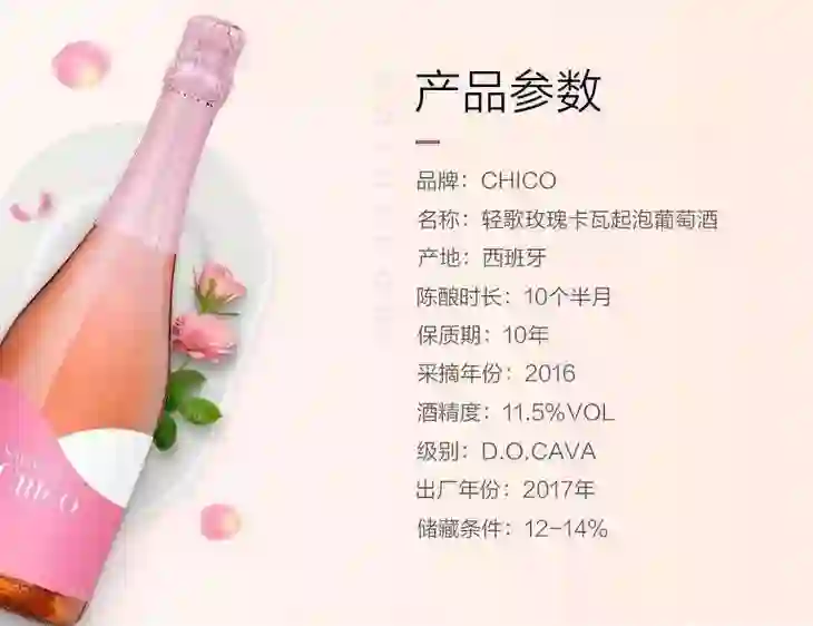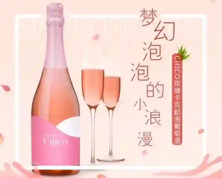 气泡大小适中玫瑰色酒体带来浪漫的体验。