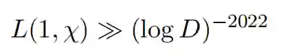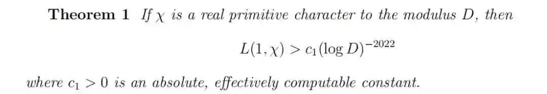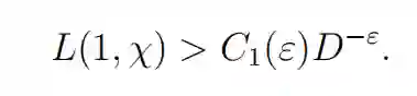 然而,西格尔的证明过程本质上涉及到某些假设,这使得西格尔定理的结果完全无效。众所周知,朗道 - 西格尔零点的不存在意味着有以下关于下界估计的推论: