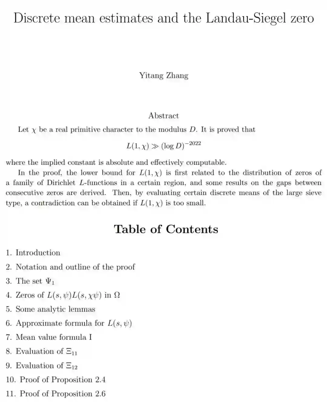 终于!数学家张益唐攻克朗道 - 西格尔(Landau-Siegel)零点猜想的预览版论文放出了。