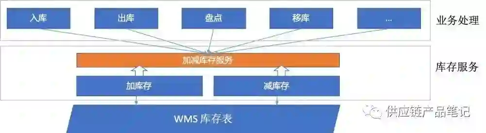 新的WMS系统研发团队都没有库存处理相关经验,在做库存处理设计时,都是在各个业务模块中自行处理,各自模块负责自己模块的库存加减,直接操作库存表,这样看起来各业务之间互不干预,似乎很解耦很合理。