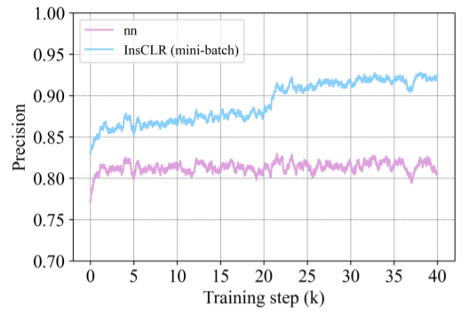 接下来,是对每个训练元组进行“过滤”,对应图中的步骤2 Mini-batch selection。从方法来说,Mini-batch selection是计算 张图像与Anchor图像的相似性,然后保留相似性大于阈值 的图像,相似性小于阈值 的图像作为Hard negative,注意经过Mini-batch selection后,训练元组候选集也要相应更新。从想法上来看,Mini-batch selection是出于对计算候选集的模型的不信任,随着训练的进行,模型也在不断地进化,因此相似性也会越来越可靠,从而利用此相似性更正正样本。附录的图6(如下)也证明了我们的观点:Mini-batch selection逐渐提升着训练元组内的Precision。