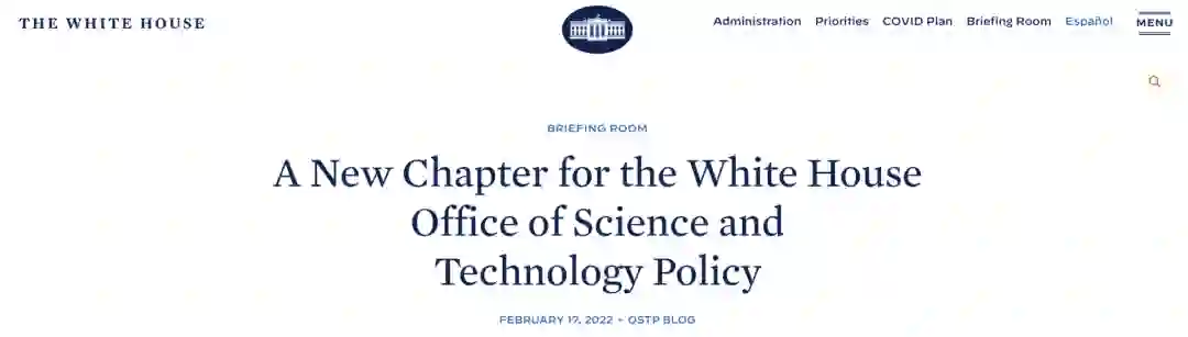 2月17日,白宫新闻办公室发布A New Chapter for the White House Office of Science and Technology Policy。