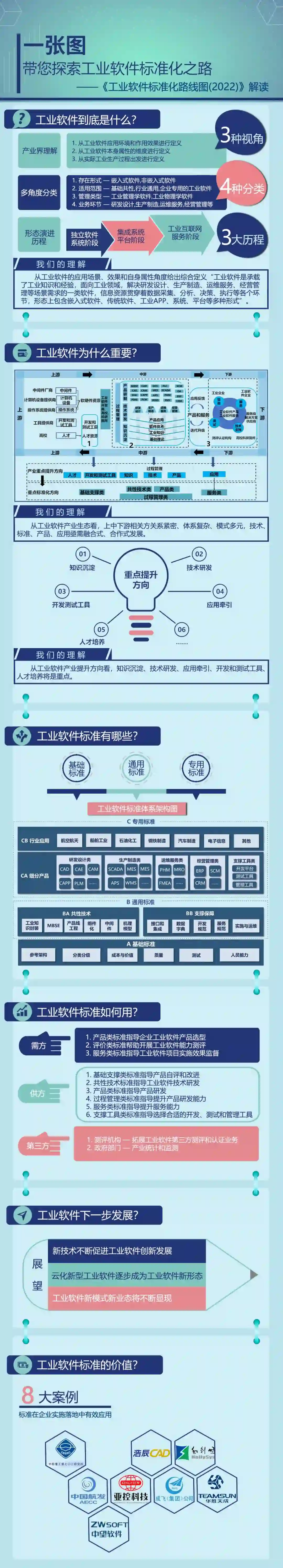 2022年4月29日,由中国电子技术标准化研究院、全国信标委工业软件/APP标准工作组主编的《工业软件标准化路线图(2022)》正式发布(以下简称“路线图”),该路线图对我国工业软件产业现状进行了深度剖析,结合现实需求构建出工业软件标准体系,并从多角度对工业软件标准化工作提出相关建议。
