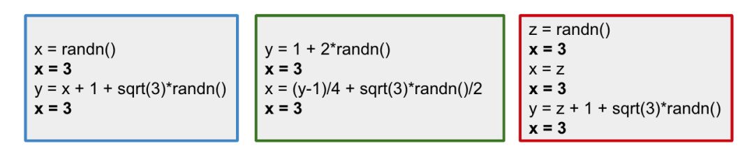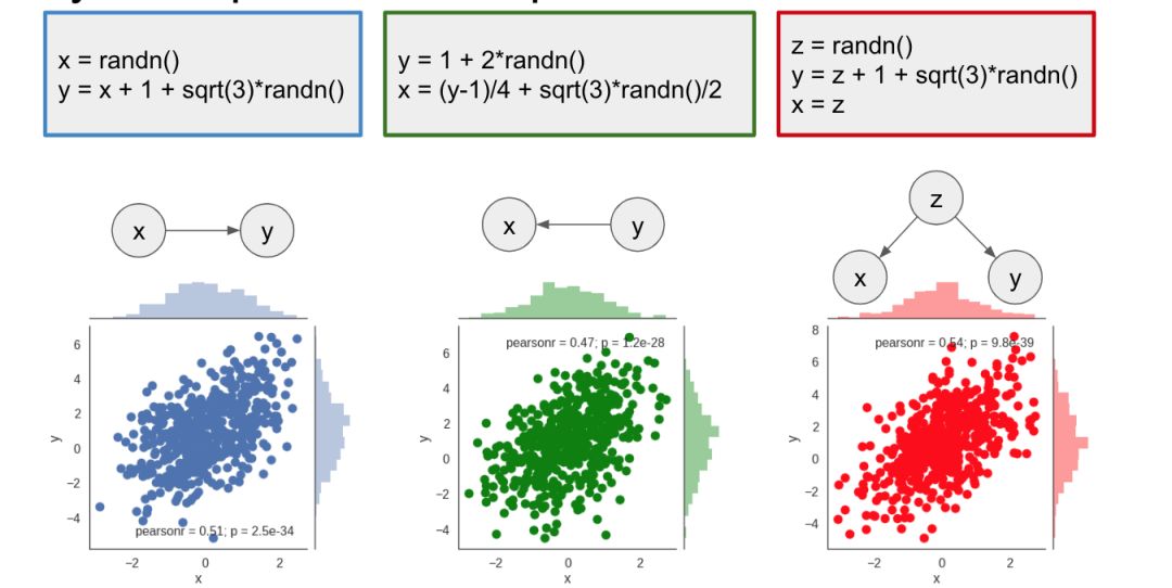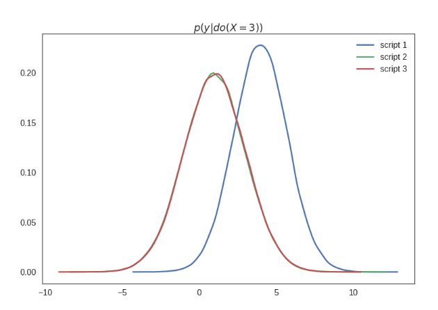 尽管这三个脚本产生了相同的分布,但却不尽相同。例如,当我们干预时,它们的行为会有所差异。